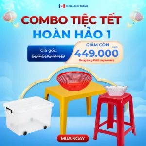 Perfect Tet Party Combo Long Thành 5 Items | Plastic Table, Plastic Chairs, Plastic Container, Plastic Basket, Plastic Bowl