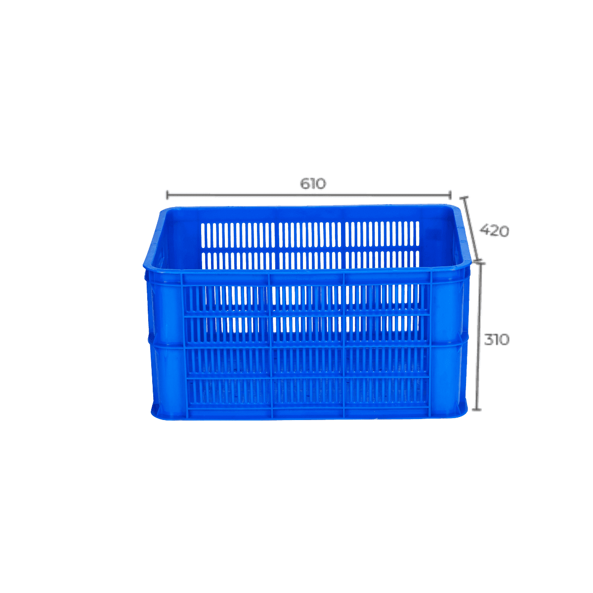HS004-SH Ventilated Plastic Crate is designed with interwoven ribs, creating solidity for the product. The crate material is made from primary HDPE plastic, environmentally friendly, and safe for the health of users.