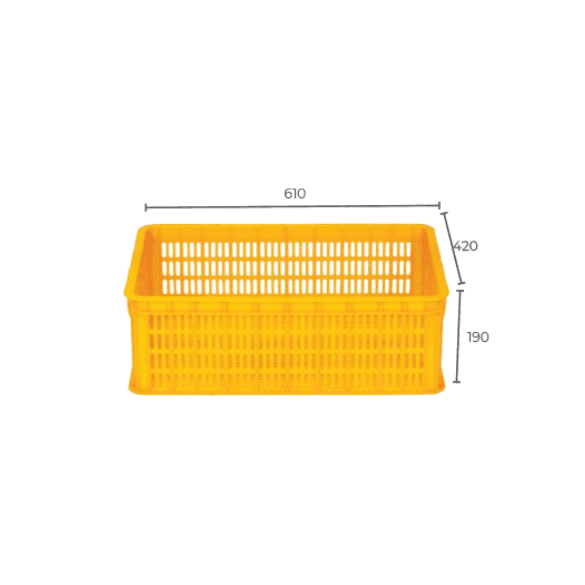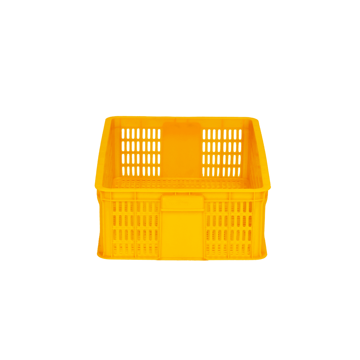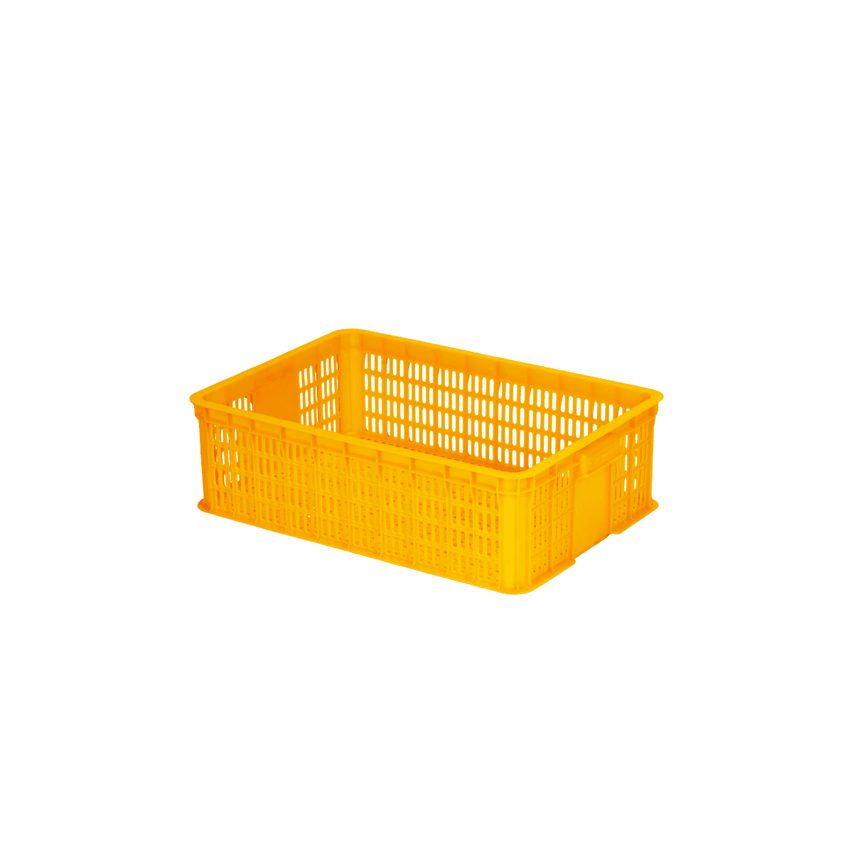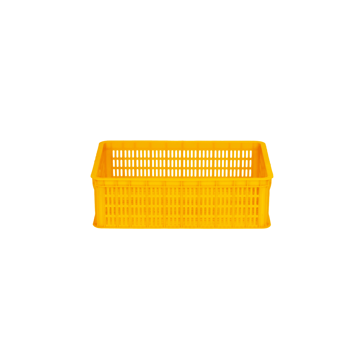 HS009-SH Ventilated Plastic Crate with moderate size, mesh-like design of holes helps goods always stay airy and dry, limiting stuffiness and moisture that causes damage to the product.
