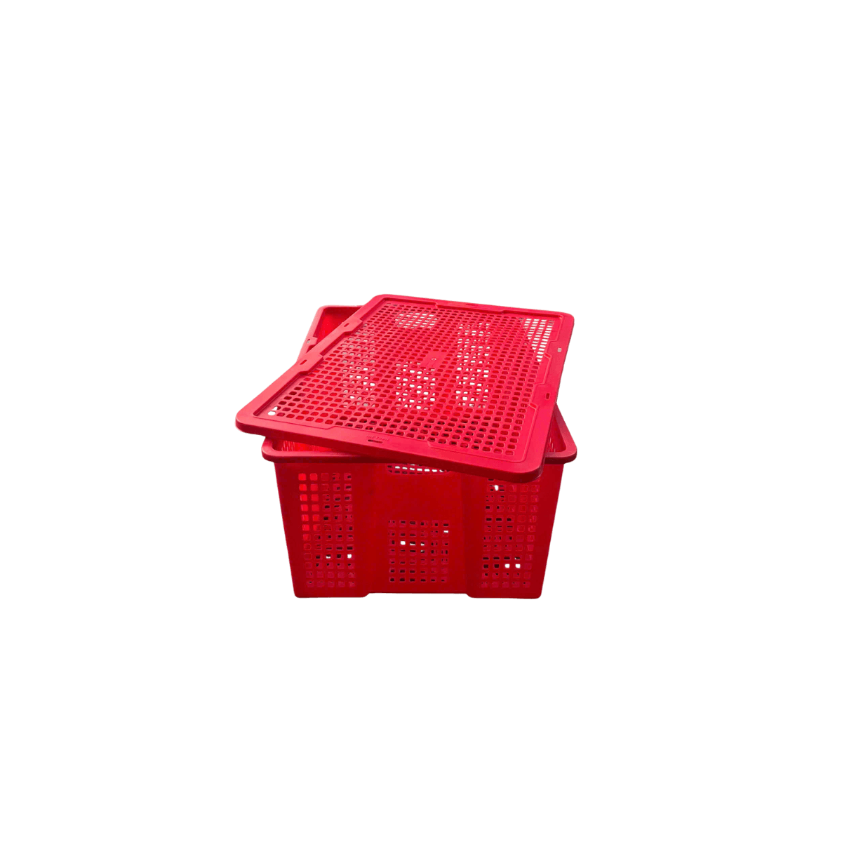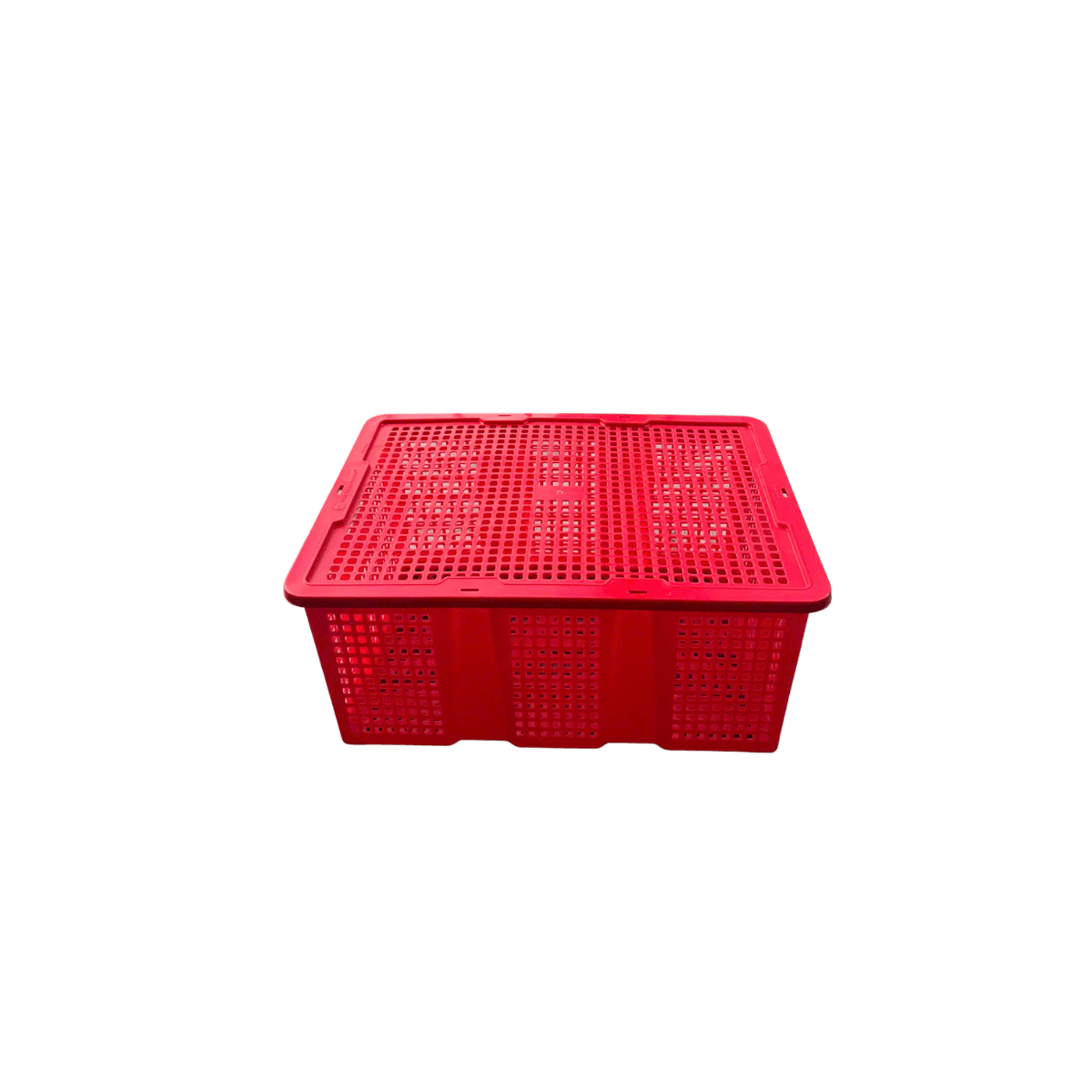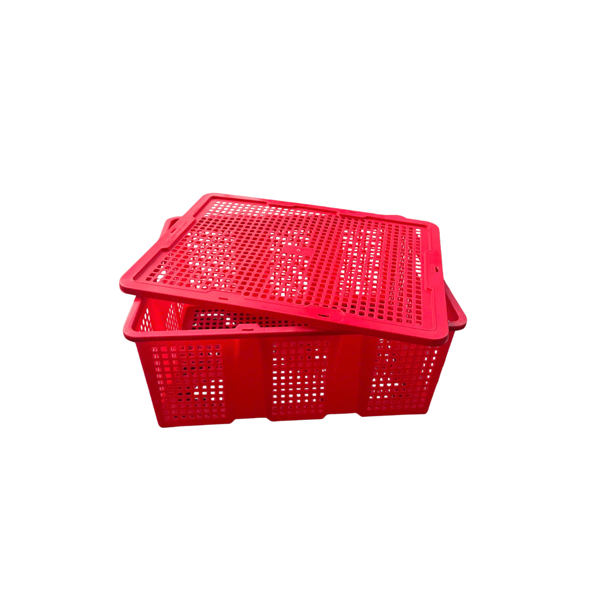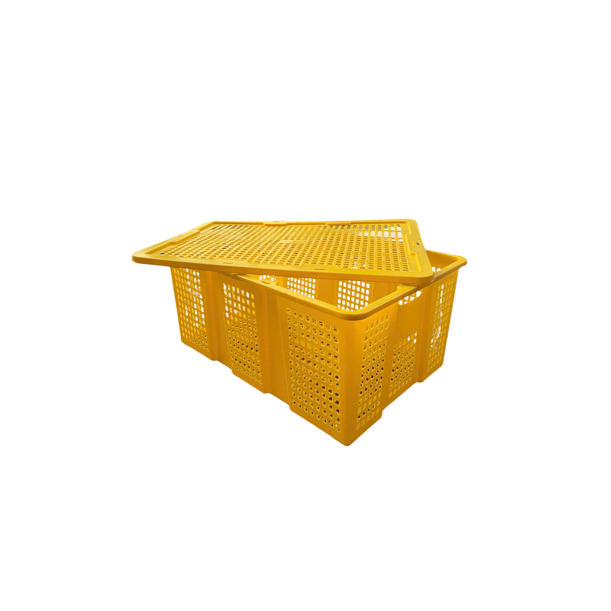 The crate is specially designed to hold fruits. The crate has a lid, helping to preserve and transport fruits more safely.