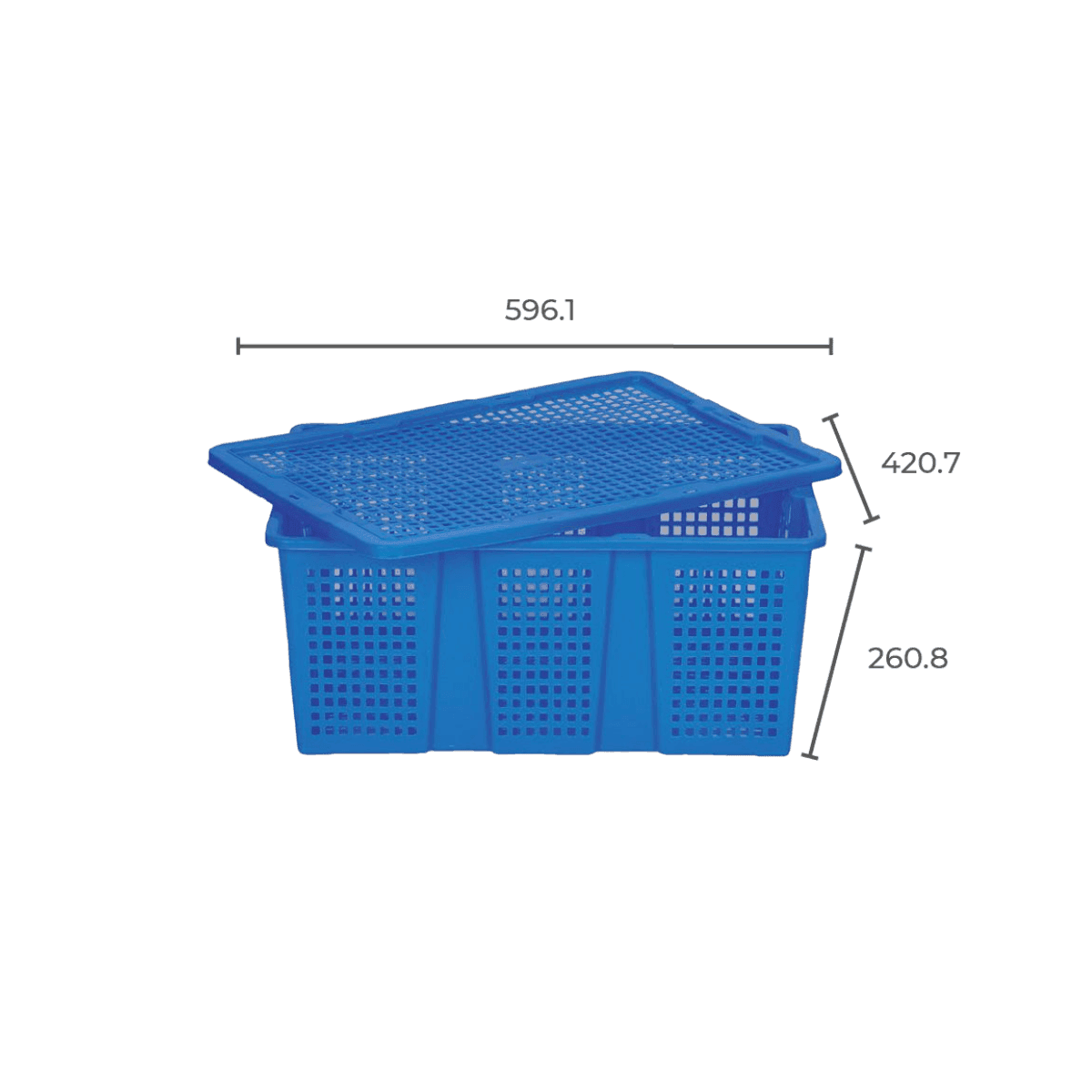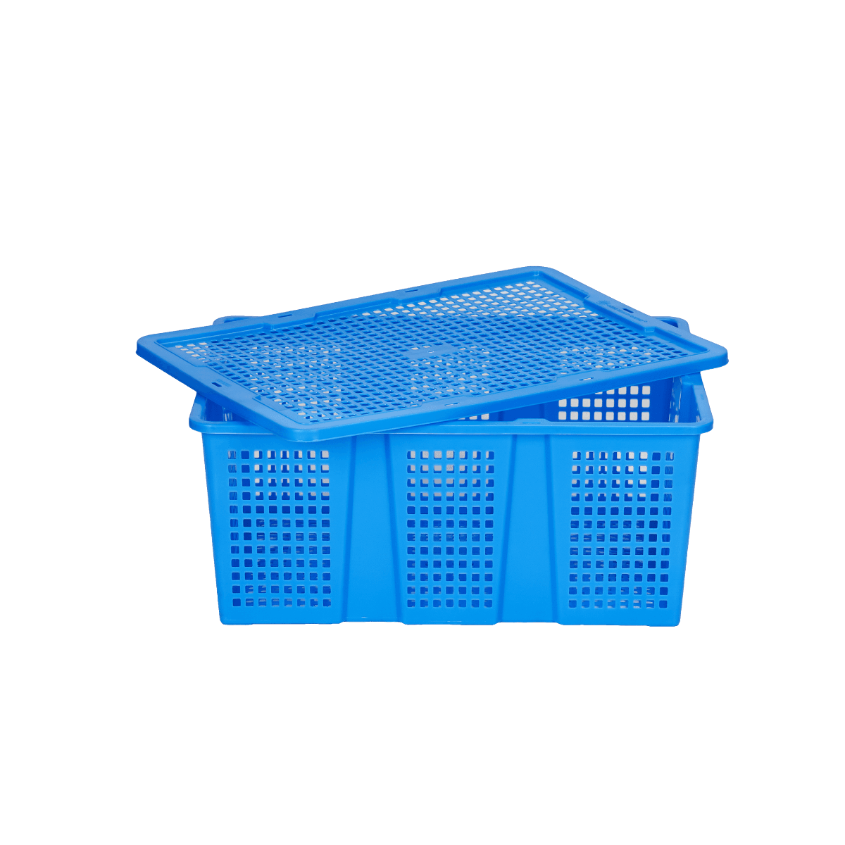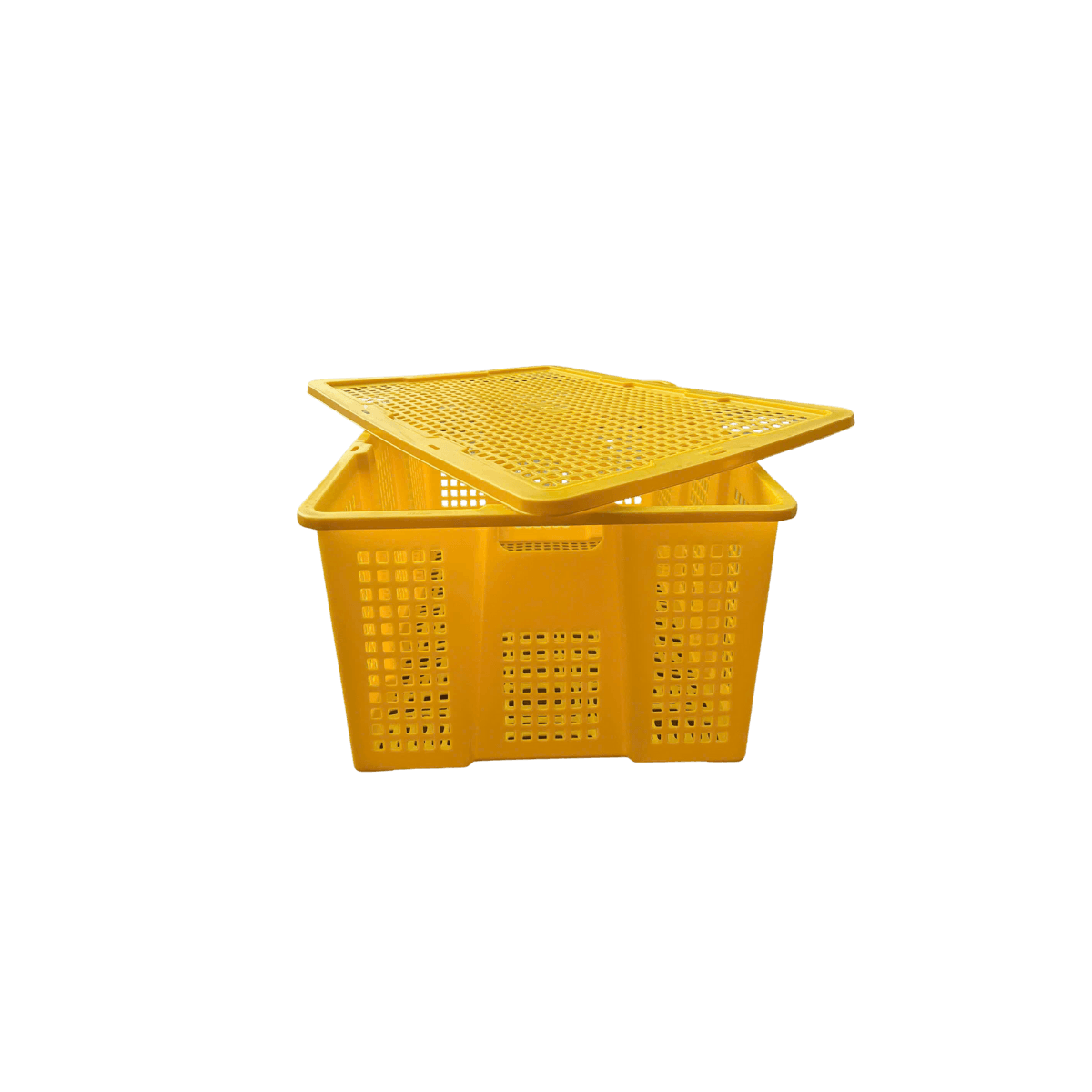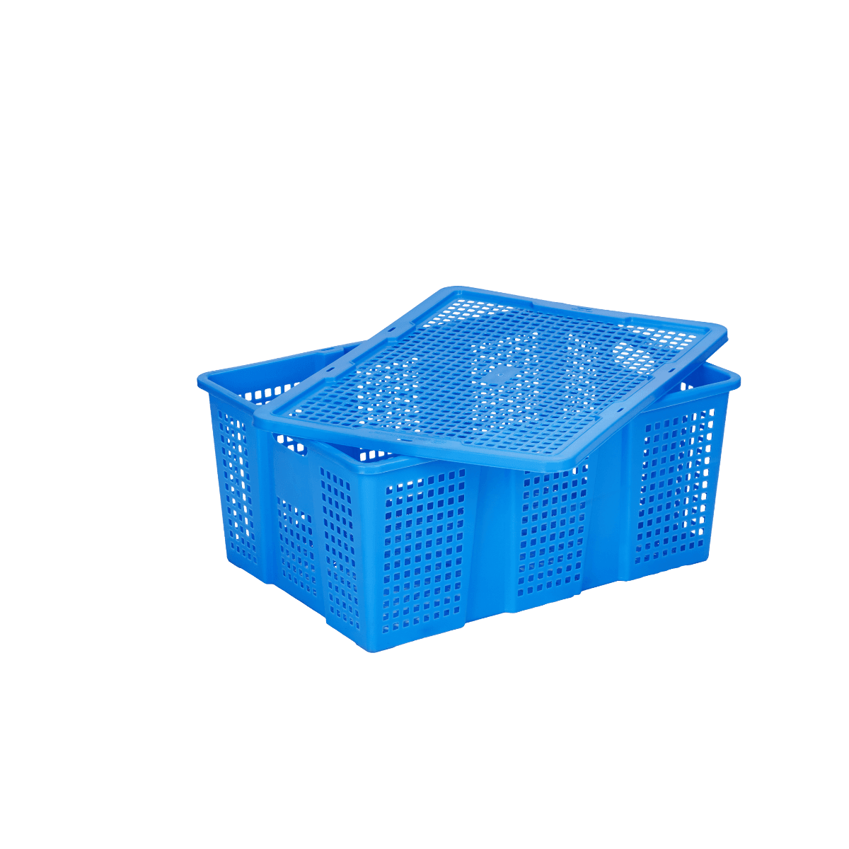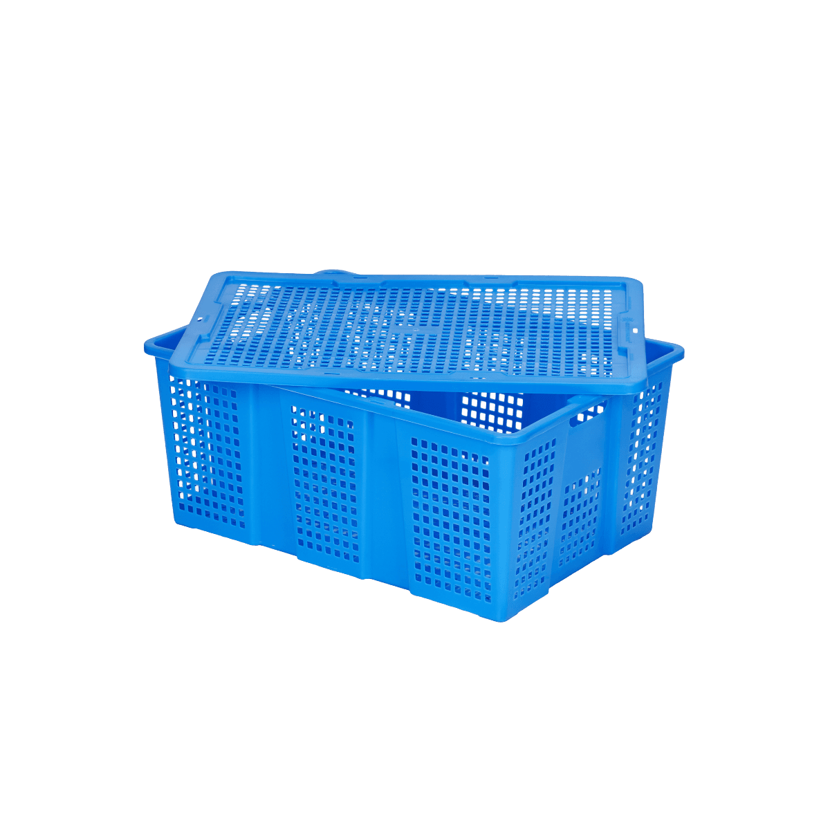 The crate is specially designed to hold fruits. The crate has a lid, helping to preserve and transport fruits more safely.