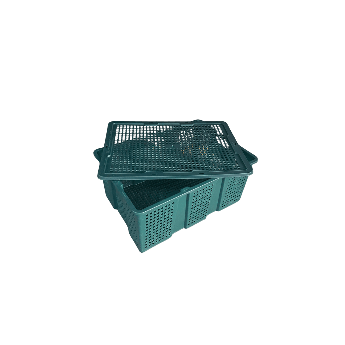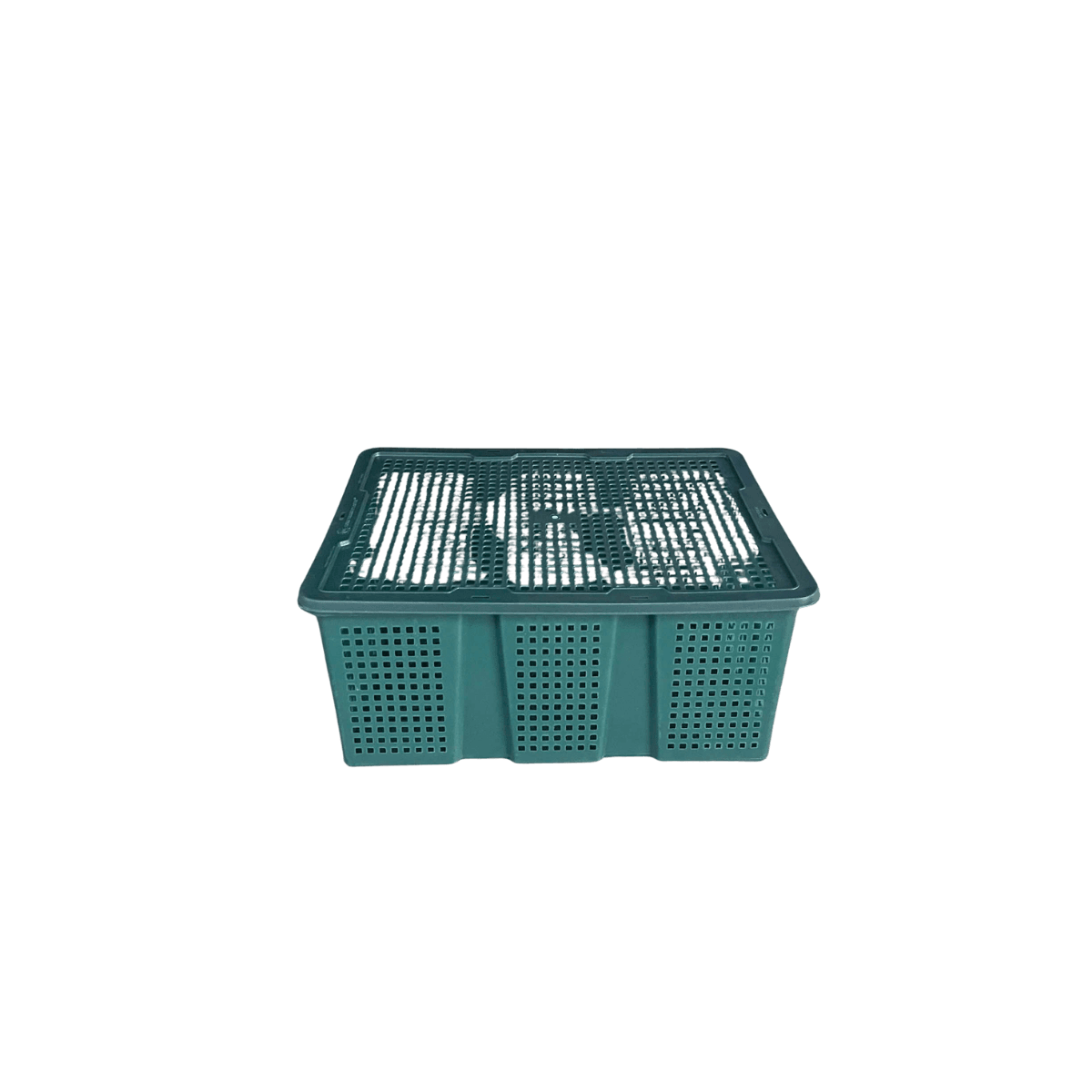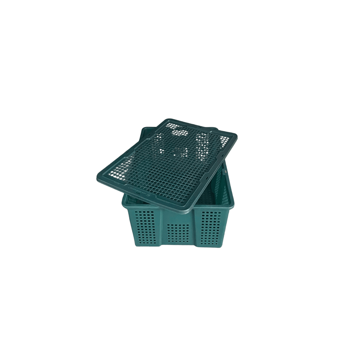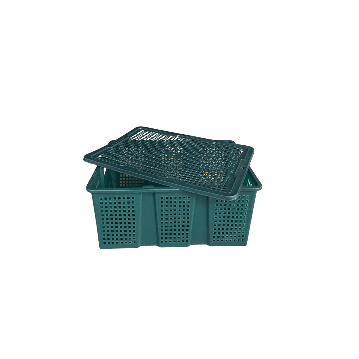 The crate is specially designed to hold fruits. The crate has a lid, helping to preserve and transport fruits more safely.