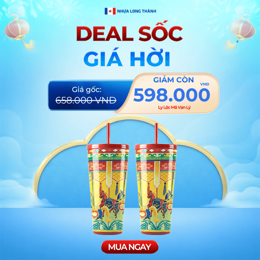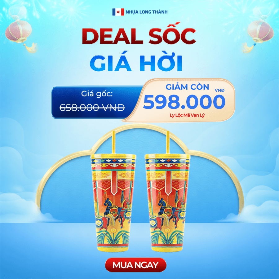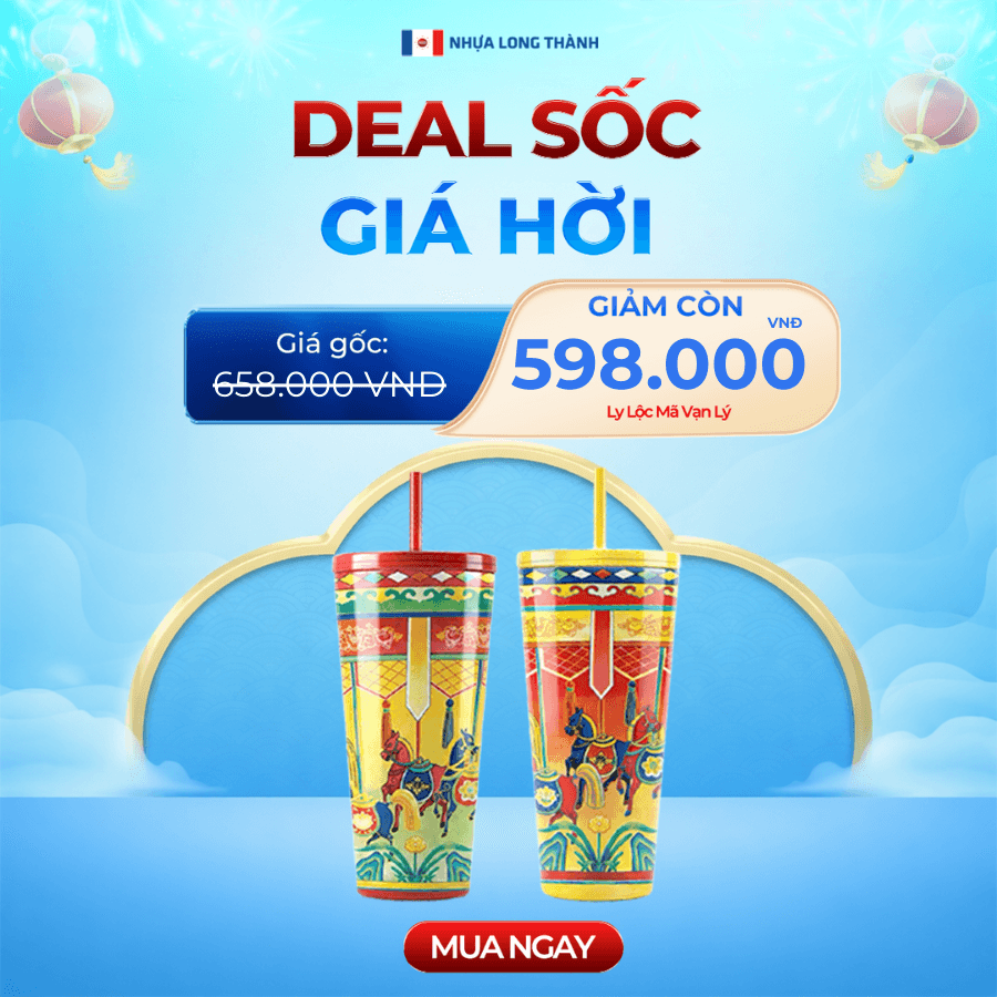 Ly nhựa 2 lớp FAMI Lộc Mã Vạn Lý 591ml, nhựa SAN nguyên sinh, ly nhựa có nắp đậy và ống hút tiện lợi
