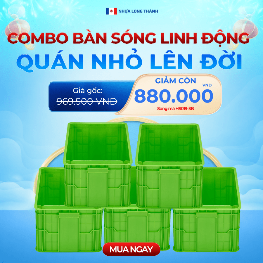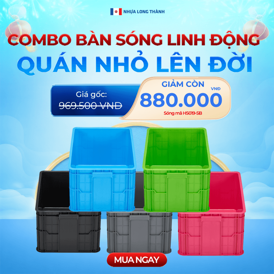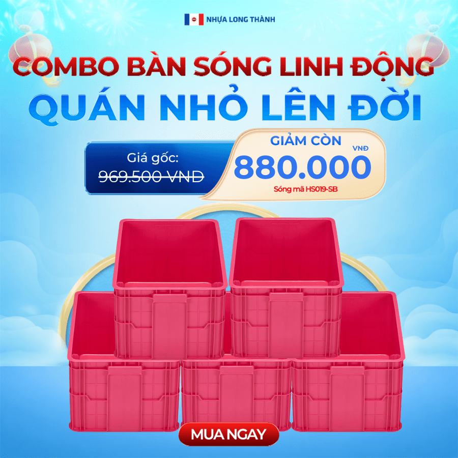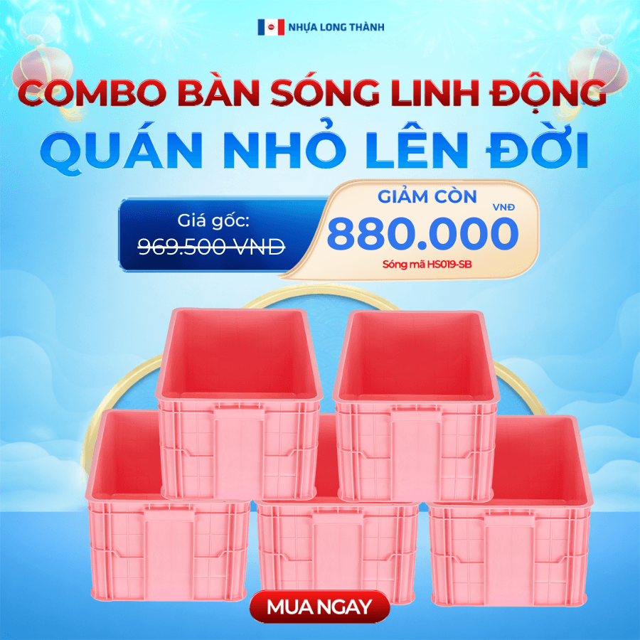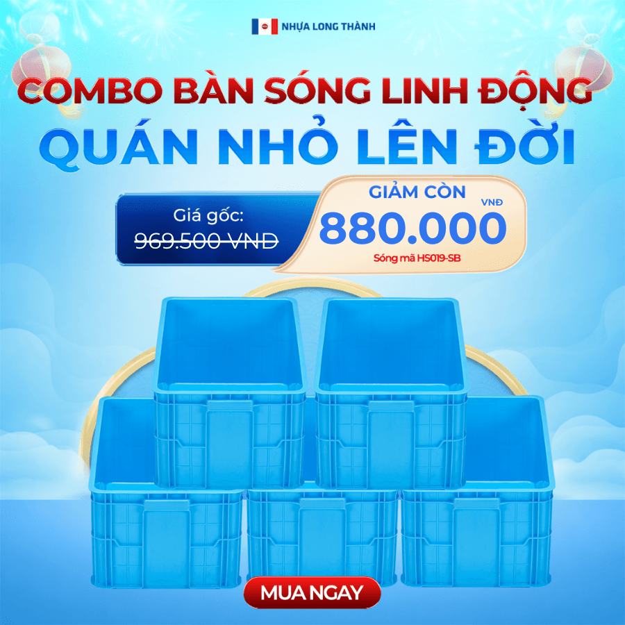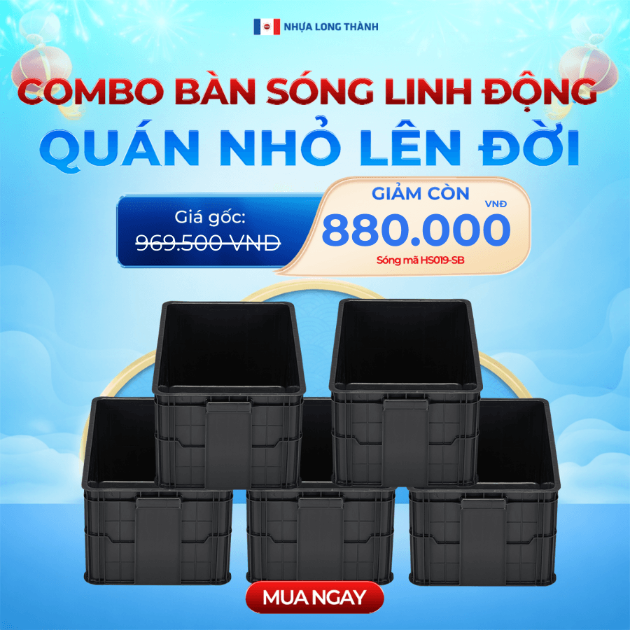 2. COMBO Tết Bàn Sóng linh động – Quán nhỏ lên đời | Combo 5 cái Sóng hở HS019-SB NHỰA LONG THÀNH 61x42x10cm