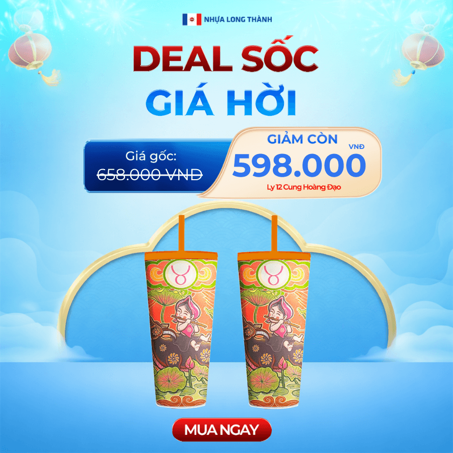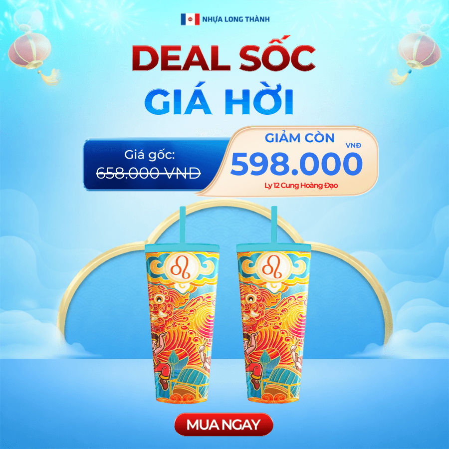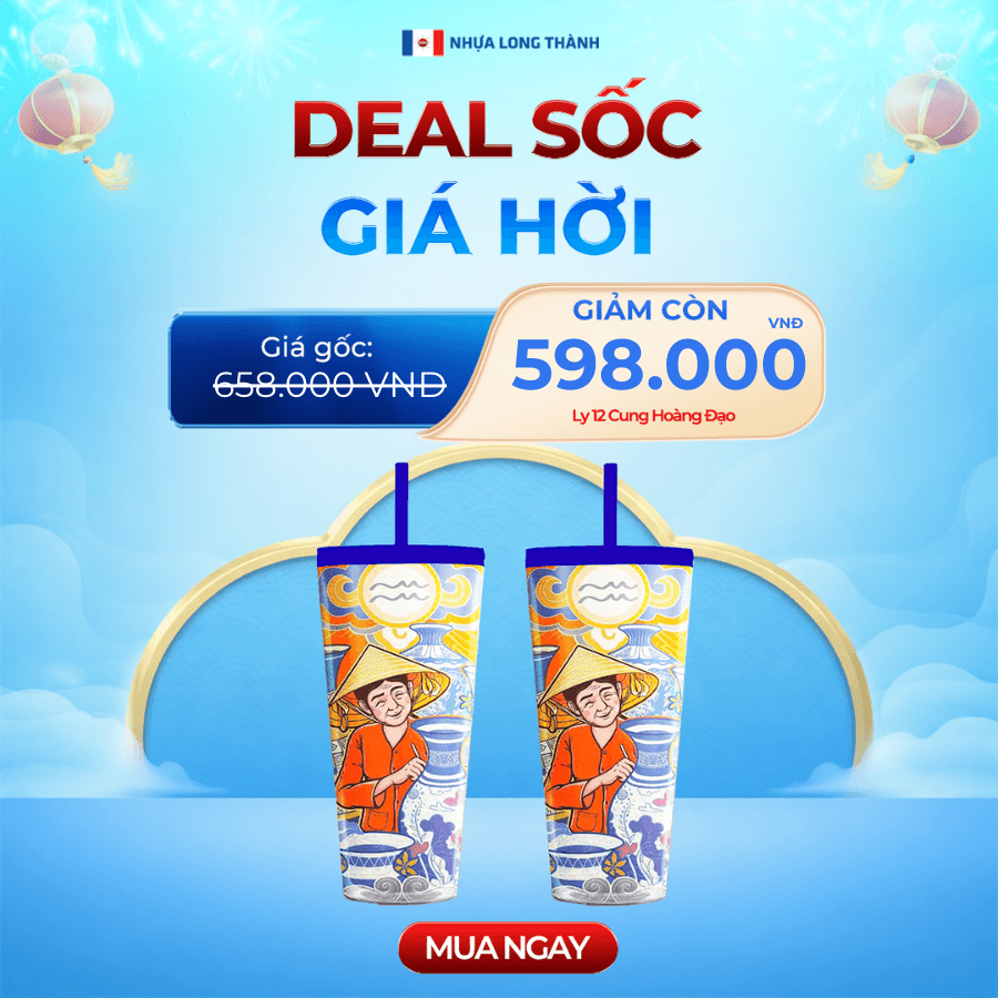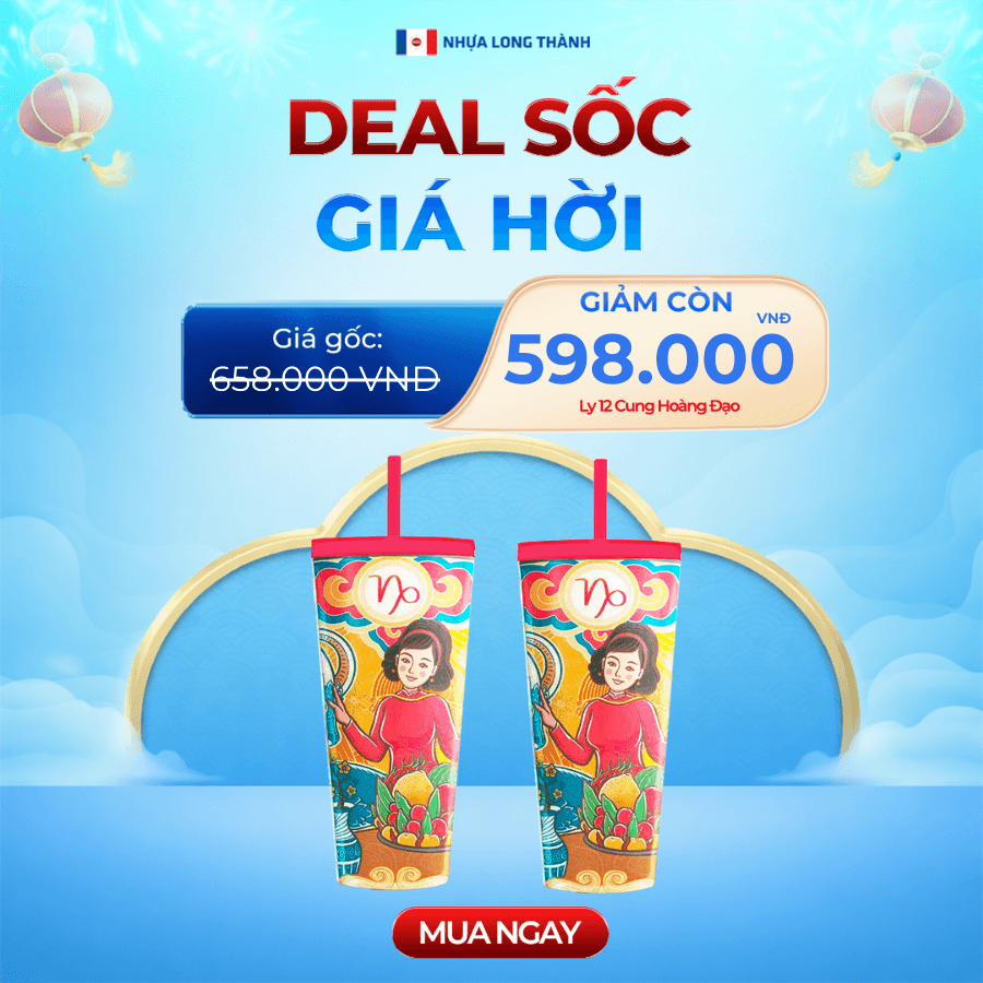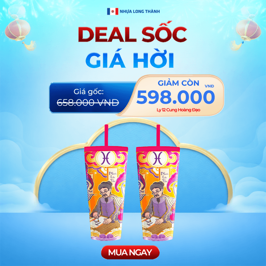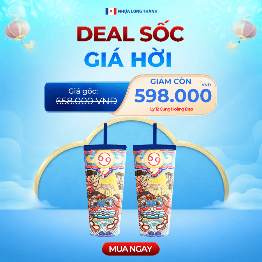 COMBO Tết 2 cái Ly nhựa 2 lớp FAMI 12 CUNG HOÀNG ĐẠO 591ml, nhựa SAN nguyên sinh, ly nhựa có nắp đậy và ống hút tiện lợi