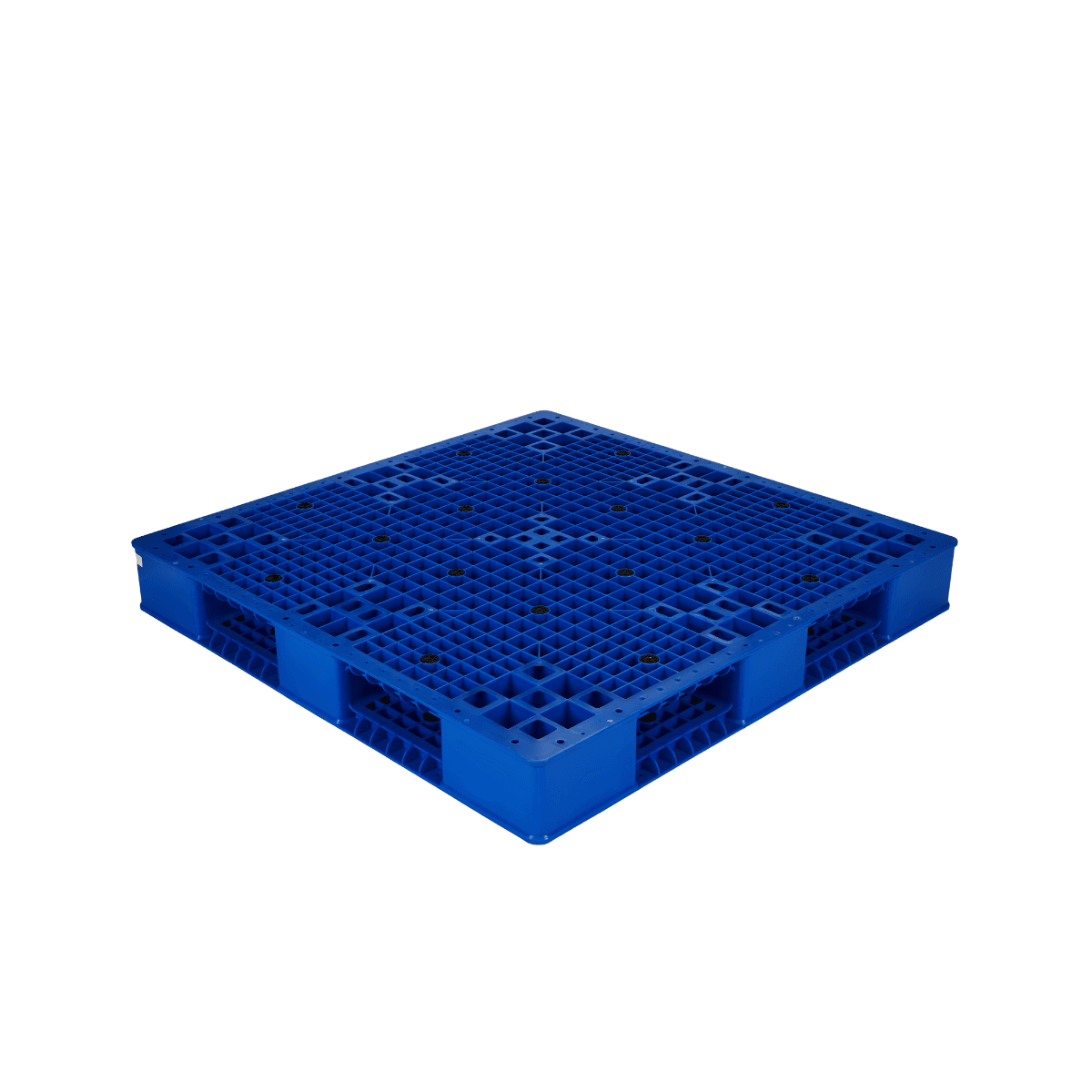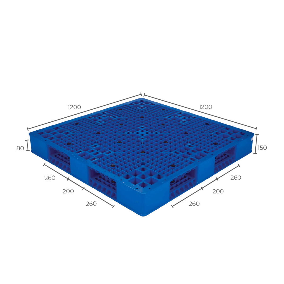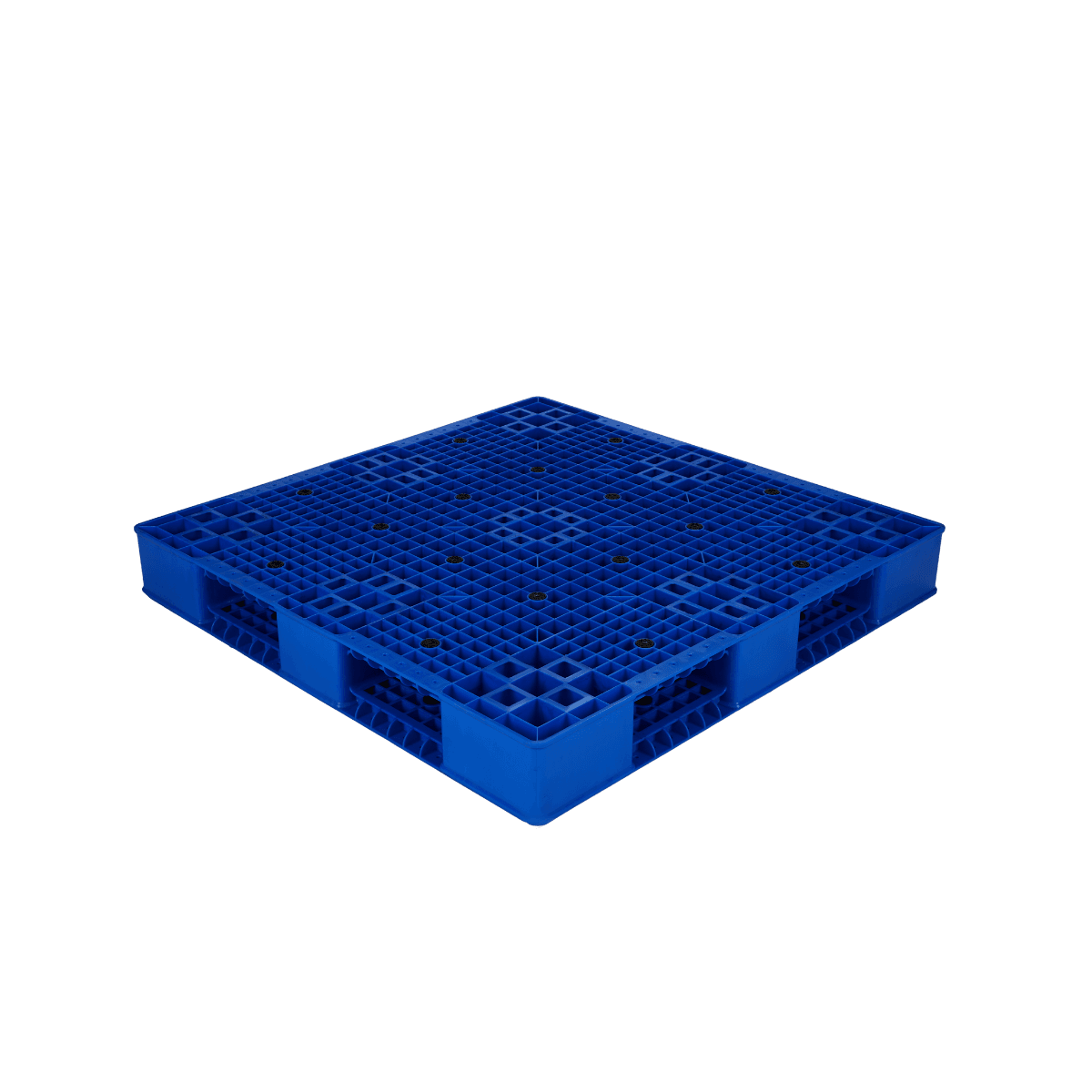 Pallet PL20 – LK là pallet liền khối sử dụng 2 mặt, chịu tải trọng cao, có nút chống trượt ở cả 2 mặt.