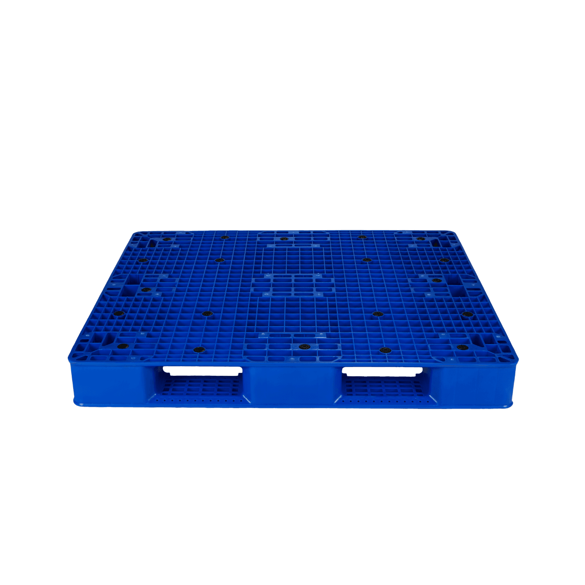 Pallet PL21 – LK là pallet liền khối có kích thước lớn, tải trọng cao, có nút chống trượt, phù hợp chất hàng dạng bao, kết cấu hình hộp dễ dàng chồng pallet lên nhau.